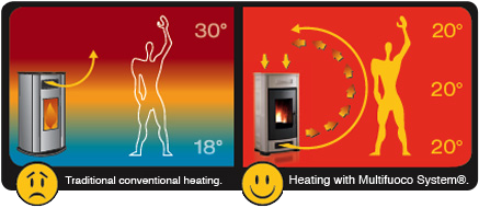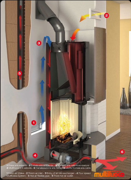 Multifuoco system® je ekskluzivno tehnološko rješenje koje nudi idealan komfor i konstantnu temperaturu. To je jedinstven sustav prisilne ventilacije kojeg su razvili i patentirali stručnjaci odjela za istraživanje i razvoj tvrtke Piazzetta, a znanstveno ispitali istraživači Instituta za primjenjenu fiziku Sveučilišta u Padovi. Multifuoco System ®omogućava ravnomjern zagrijavanje jedne ili više prostorija, od poda do stropa.